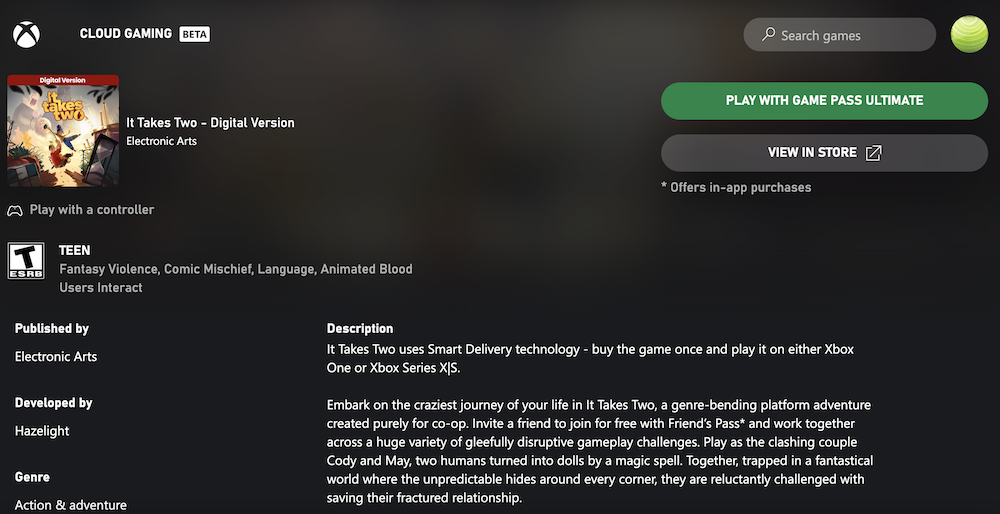 Play It Takes Two on Mac with cloud gaming services