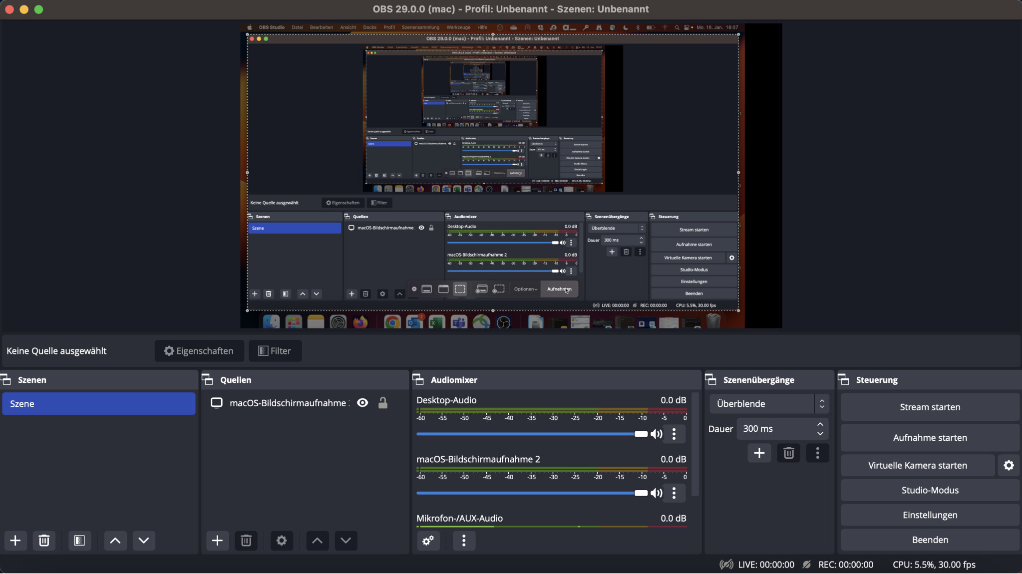OBS Studio is another Camtasia alternative on Mac. It is a free program for live streaming and video recording; it has an M1/M2 Mac version. Though OBS Studio is a perfectly capable app, it takes a while to learn due to its poorly-designed interface. It also doesn’t have many video editing features. Considering that Streamlabs Desktop was specifically made to be a better version of OBS, you should probably use that program instead. However, OBS is more lightweight, which is useful if you have a weak Mac.