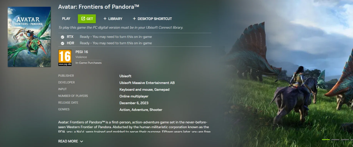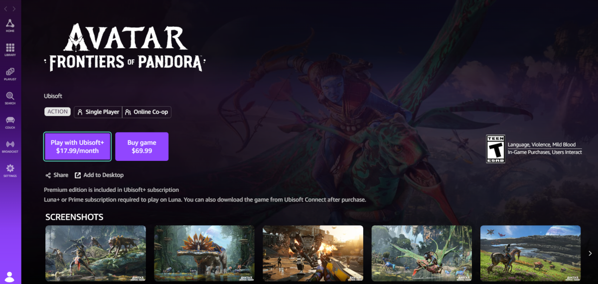 If you have an old Mac or it cannot satisfy Avatar: Frontiers of Pandora game system requirements, there is an easy solution. Cloud gaming services will be happy to provide you with sufficient computing power – though not for free, of course. All you need is a browser or a small client program and a good internet connection starting from 15 MBit/s. There are several great platforms that provide these services; the best ones are Boosteroid, Xbox Cloud, and NVidia GeForce NOW. As Amazon Luna and GeForce NOW have Avatar: Frontiers of Pandora in their game library, each service can be an excellent choice for those seeking to try the game out.