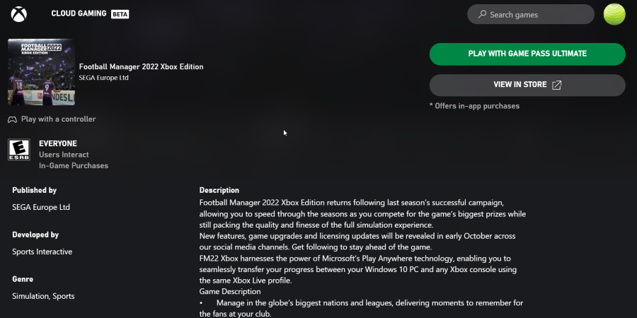 Play Football Manager 2022 on Mac with Boosteroid or Xbox Cloud Gaming (Xbox version only)
