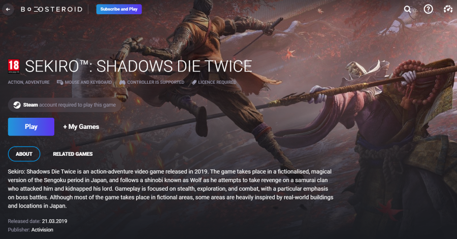 Update: Boosteroid Now fully support Sekiro™: Shadows Die Twice! Play the advanced game on a Mac, old Windows PC, and even Android!
