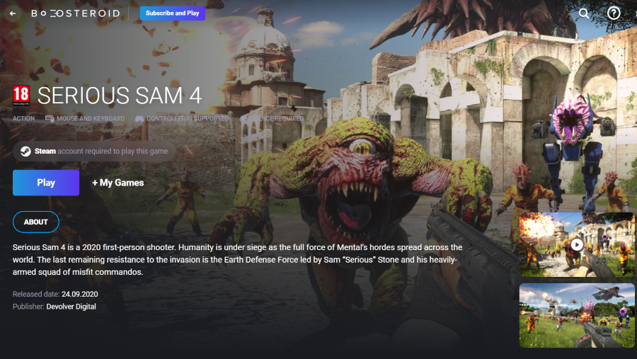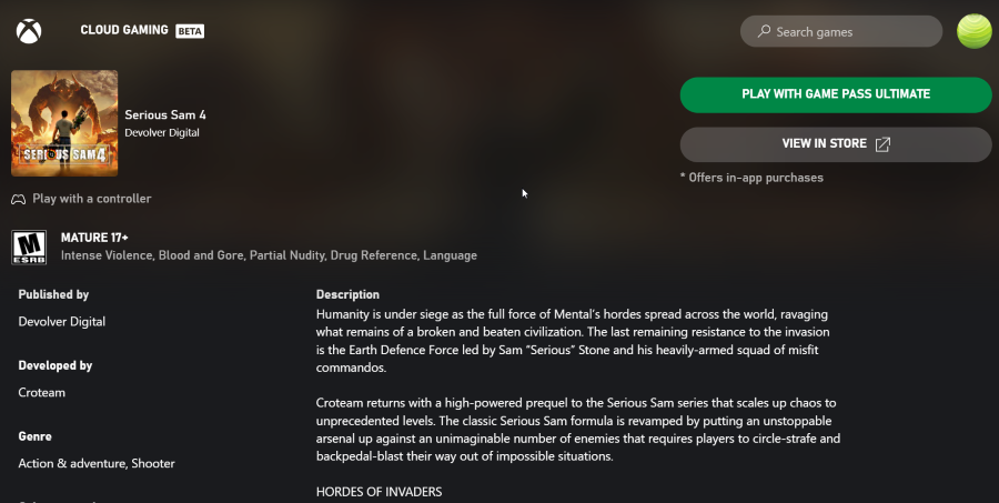 Update: Boosteroid and Xbox Cloud Gaming fully support Serious Sam 4! Play the advanced game on a Mac, old Windows PC, and even Android!