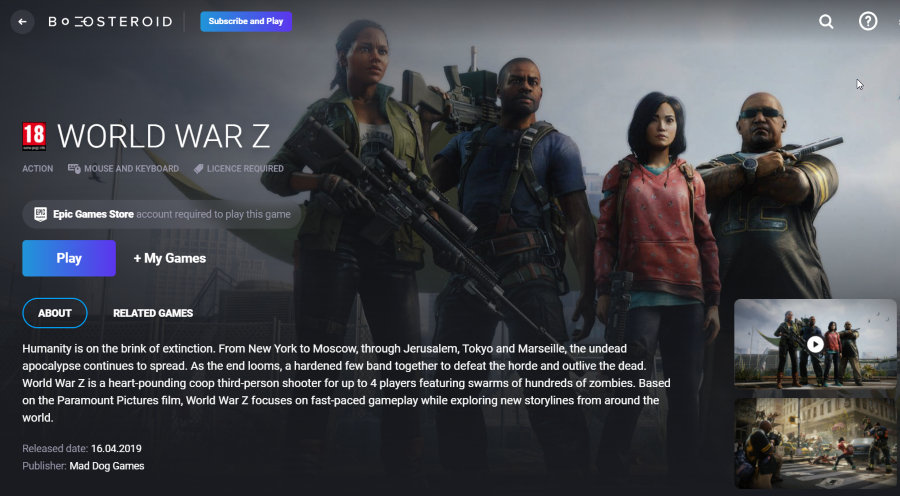 If you have an old Mac or it cannot satisfy the World War Z game system requirements, there is an easy solution. Cloud gaming provides you with sufficient cloud resources for a fixed fee. All you need is a browser or a small client program and a good internet connection starting from 20 Mbits/s. There are several great services that provide such an opportunity, among the best are Boosteroid, AirGPU, Xbox Cloud Gaming, and Nvidia GeForce Now. Out of these, Boosteroid and Xbox Cloud Gaming have World War Z in their game library.