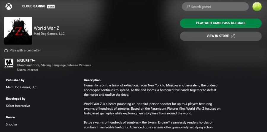 Play World War Z on Mac with Boosteroid or Xbox Cloud